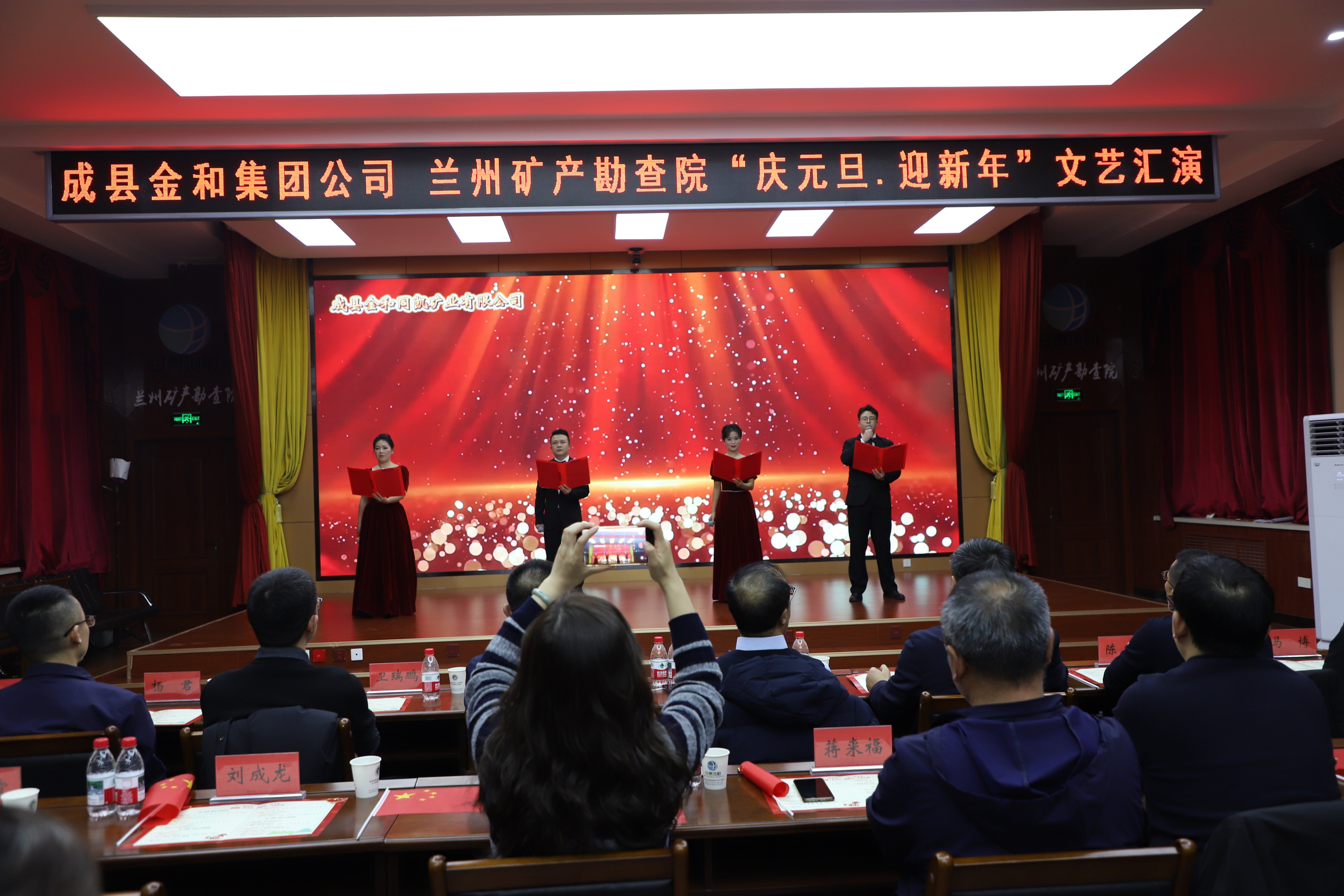 12月30日,联谊活动在兰州持续推进。双方以“矿”野星辰·“企”许未来为主题,联合举办了一场精彩纷呈的“庆元旦、迎新年”文艺汇演。院党委书记、院长谢平军在致词中指出,今天的相聚,不仅仅是一场简单的聚会,更是一次矿企携手、共谋发展的盛会。兰州矿勘院与金和集团合作的不断深化,从项目建设到产业协同,从人才培养到社会公益,每一次合作都凝聚着双方的智慧与力量,每一次突破都书写着共赢的新篇章。希望借此机会,让我们相互增进了解,让彼此的优势得以充分释放,让合作的潜力得以充分挖掘。甘肃省有色地勘局二级巡视员、工会主席杨生棠,九州开发区管委会、城关区靖远路街道、城关区九州大道社区相关领导出席了联谊活动。